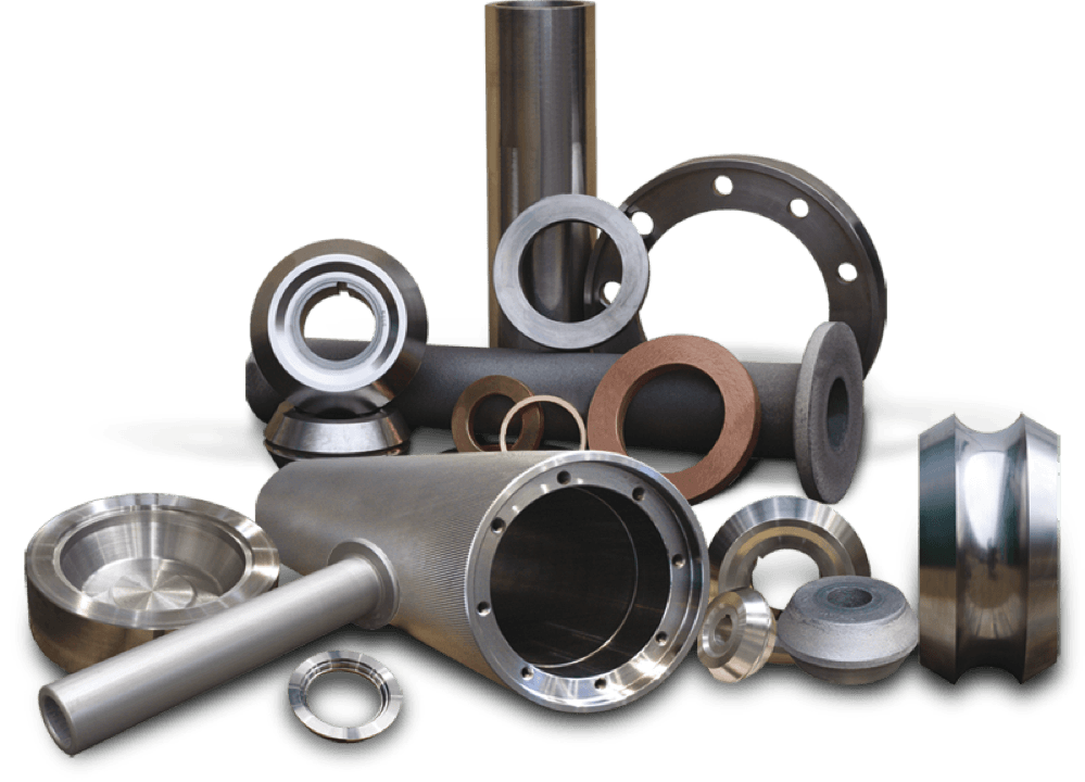- Konische und zylindrische Trommelmäntel, Schneckenkörper und Schneckenkörperteile, Ringe